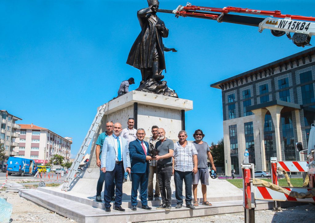 Kuruluştan Kurtuluşa Anıtının dikilme çalışmalarını yerinde inceleyen Belediye Başkanı Prof. Dr. Alim IŞIK, Heykeltraş Mustafa Kemal ALTINSOYa teşekkür ederek, Kütahya Belediyesinin önüne dikilen Kuruluştan Kurtuluşa Anıtının Kütahyanın sembollerinden biri olacağını ifade etti.